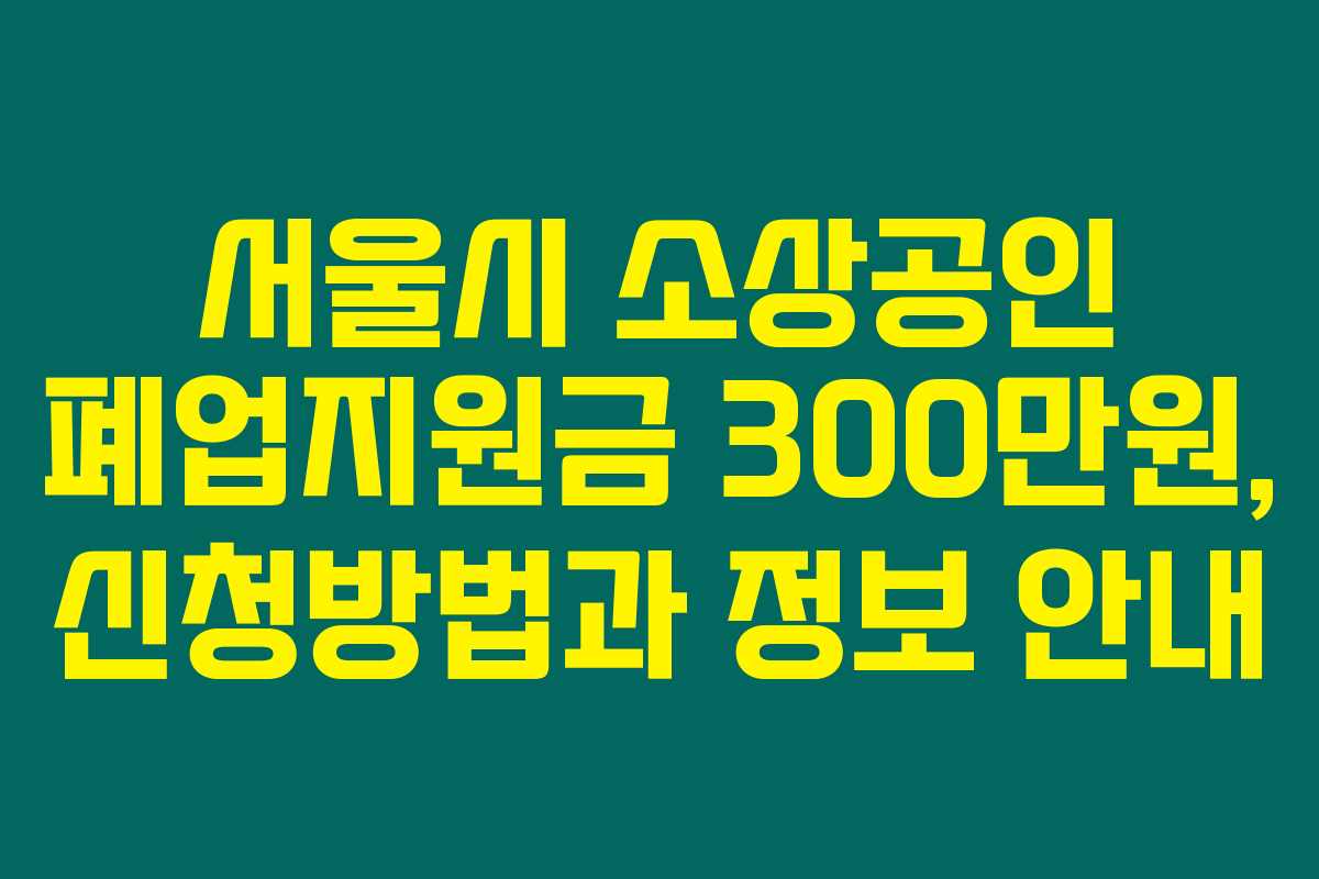 제가 직접 경험해본 결과로는, 서울시에서 제공하는 소상공인 폐업지원금은 정말 중요한 제도라고 할 수 있어요. 이 지원금은 300만원으로, 폐업 소상공인들에게 큰 도움이 됩니다. 하지만 신청 방법과 조건이 있는 만큼, 아래를 읽어보시면 보다 정확한 정보와 신청 방법을 절차에 따라 상세히 알고 가실 수 있을 것입니다.