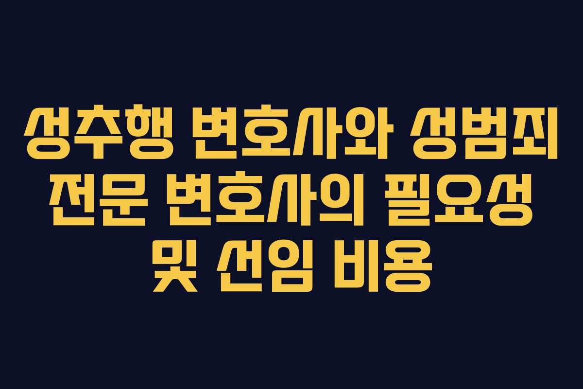 성범죄 사건에 연루될 경우, 전문 변호사의 도움을 받는 것이 매우 중요합니다. 본 글에서는 성추행 변호사의 필요성과 평균적인 선임 비용에 대해 설명하겠습니다.