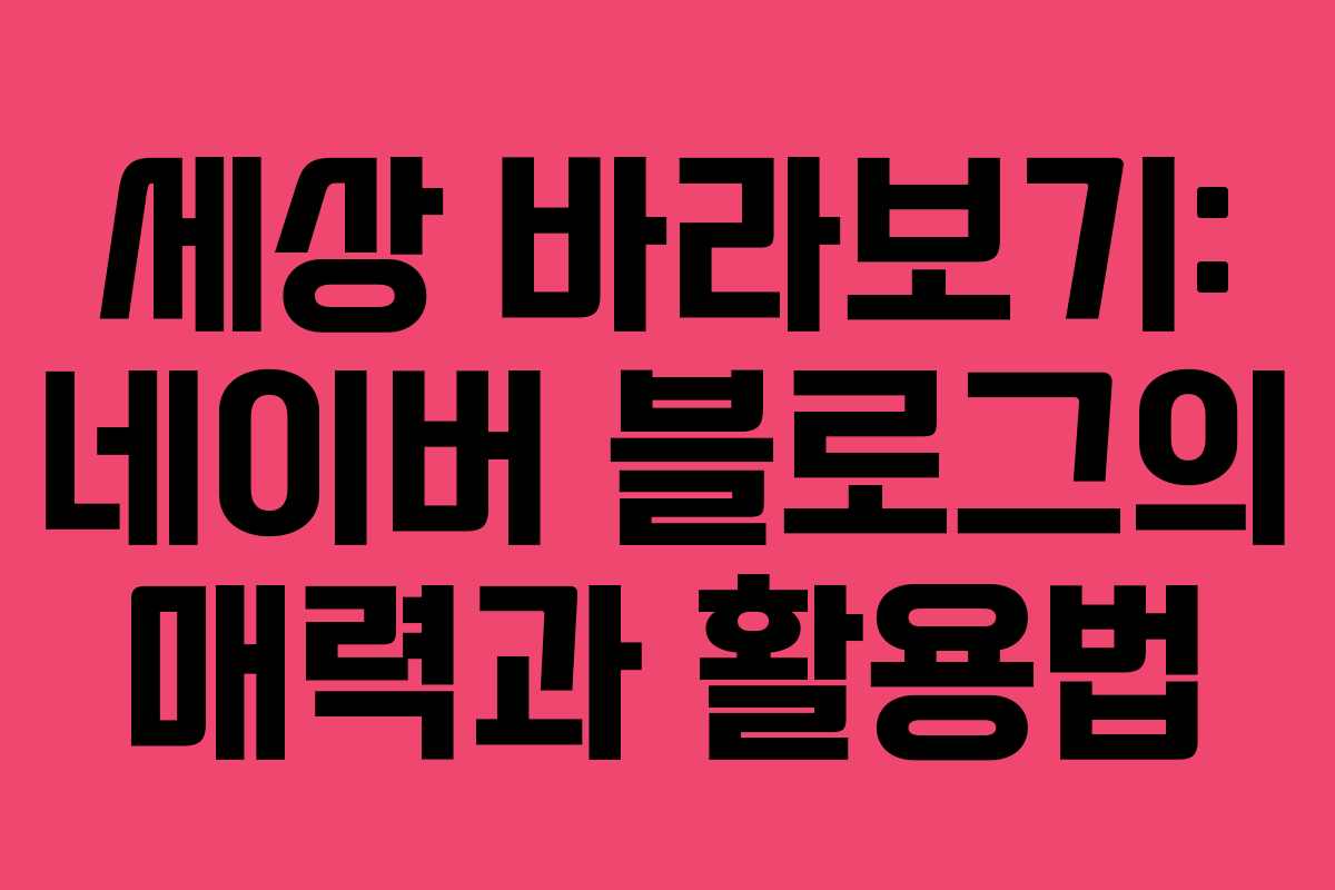 네이버 블로그는 개인의 생각과 정보를 공유할 수 있는 플랫폼으로, 많은 사람들이 활용하고 있습니다. 이 글에서는 네이버 블로그의 특징과 장점, 활용 방법에 대해 알아보겠습니다.