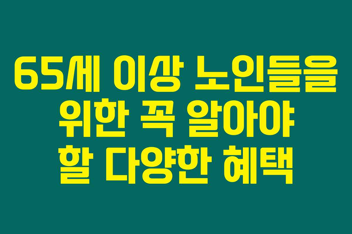 65세 이상 노인분들을 위해 준비된 복지 혜택이 정말 많답니다. 혹시나 몰라서 미처 알아보지 못한 분들은 이 기회를 통해 필요한 정보와 혜택을 꼭 확인해보세요. 노인 신분이 되면 다양한 지원을 받을 수 있다는 점에서 알면 큰 도움이 될 거예요. 아래를 읽어보시면 유용한 정보들이 가득하니 놓치지 마세요!