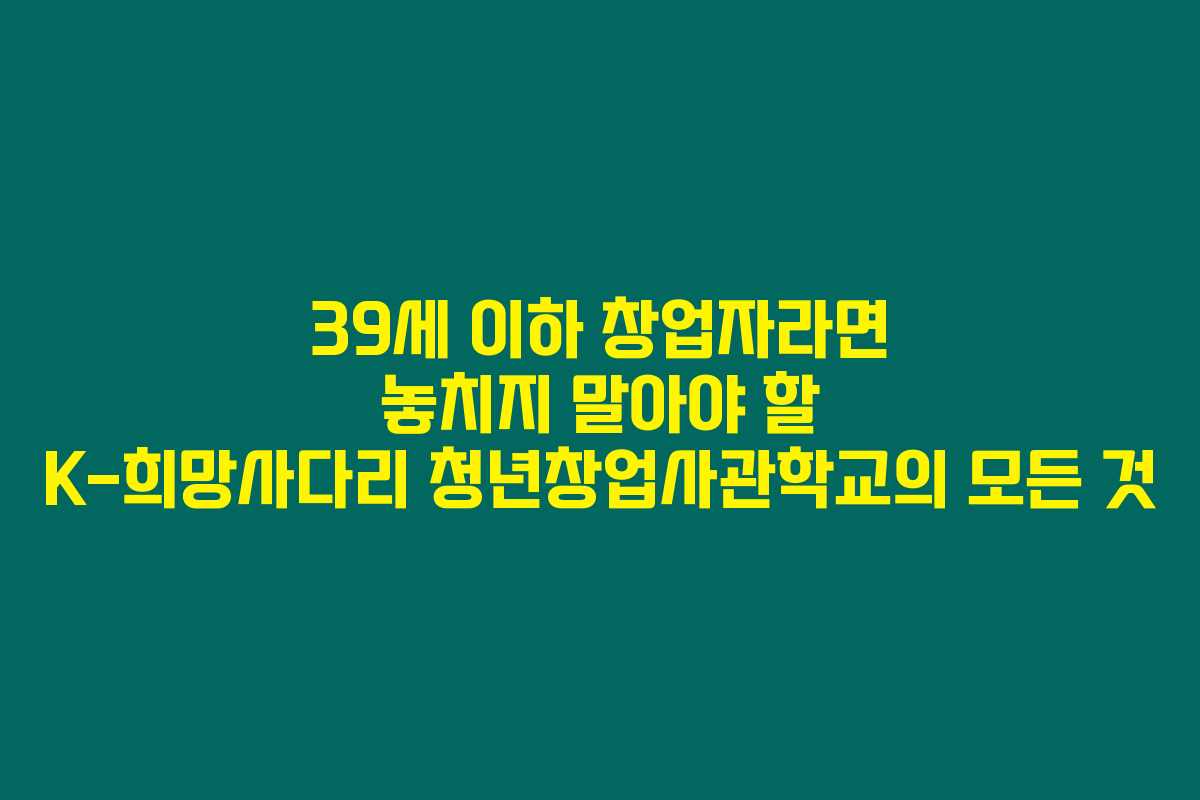 제가 직접 리서치해본 바로는, K-희망사다리 청년창업사관학교는 창업을 꿈꾸는 청년들에게 큰 기회를 제공하는 프로그램이에요. 정부가 직접 운영하는 이 프로그램은 사업에 필요한 다양한 자원을 지원하고 있어요. 아래를 읽어보시면 이 프로그램이 어떤 혜택을 갖고 있는지, 신청 방법은 무엇인지에 대해 자세히 알아볼 수 있습니다.