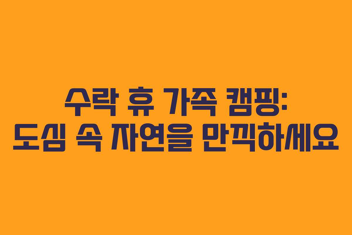 서울에서 아이와 함께 자연을 느끼고 싶지만 멀리 나가기 부담스러운 분들을 위해, 도심 속에서 쉽게 접근할 수 있는 캠핑 장소를 소개합니다. 바로 서울 노원구 수락산에 위치한 수락 휴 자연휴양림입니다. 이곳은 가족이 함께하는 캠핑에 최적화된 공간으로, 여러 가지 장점이 있습니다.