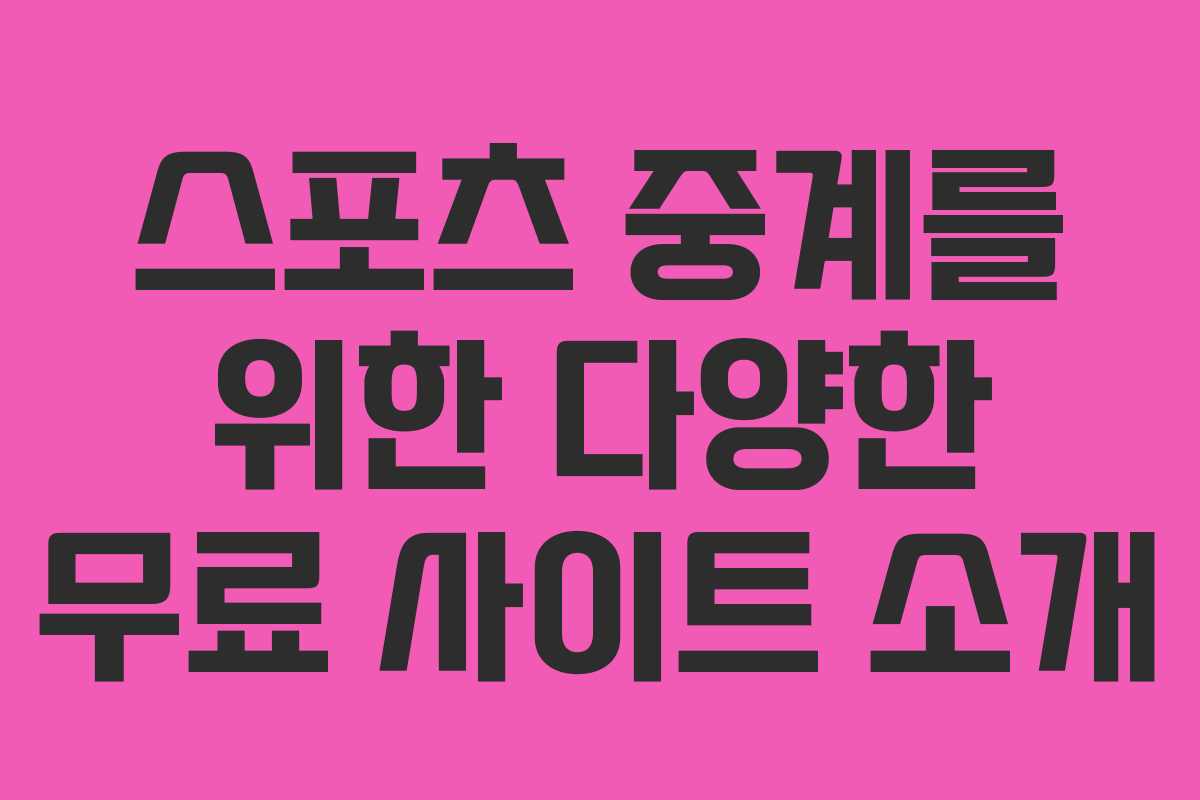 스포츠를 사랑하는 많은 이들에게 다양한 경기의 생중계는 큰 즐거움입니다. 특히 해외 리그에서 활약하는 한국 선수들의 경기를 놓치지 않기 위해 많은 팬들이 온라인 스트리밍 서비스를 찾고 있습니다. 이번 글에서는 무료로 스포츠 중계를 제공하는 여러 사이트를 소개하고, 각 사이트의 특징과 이용 방법에 대해 알아보겠습니다.