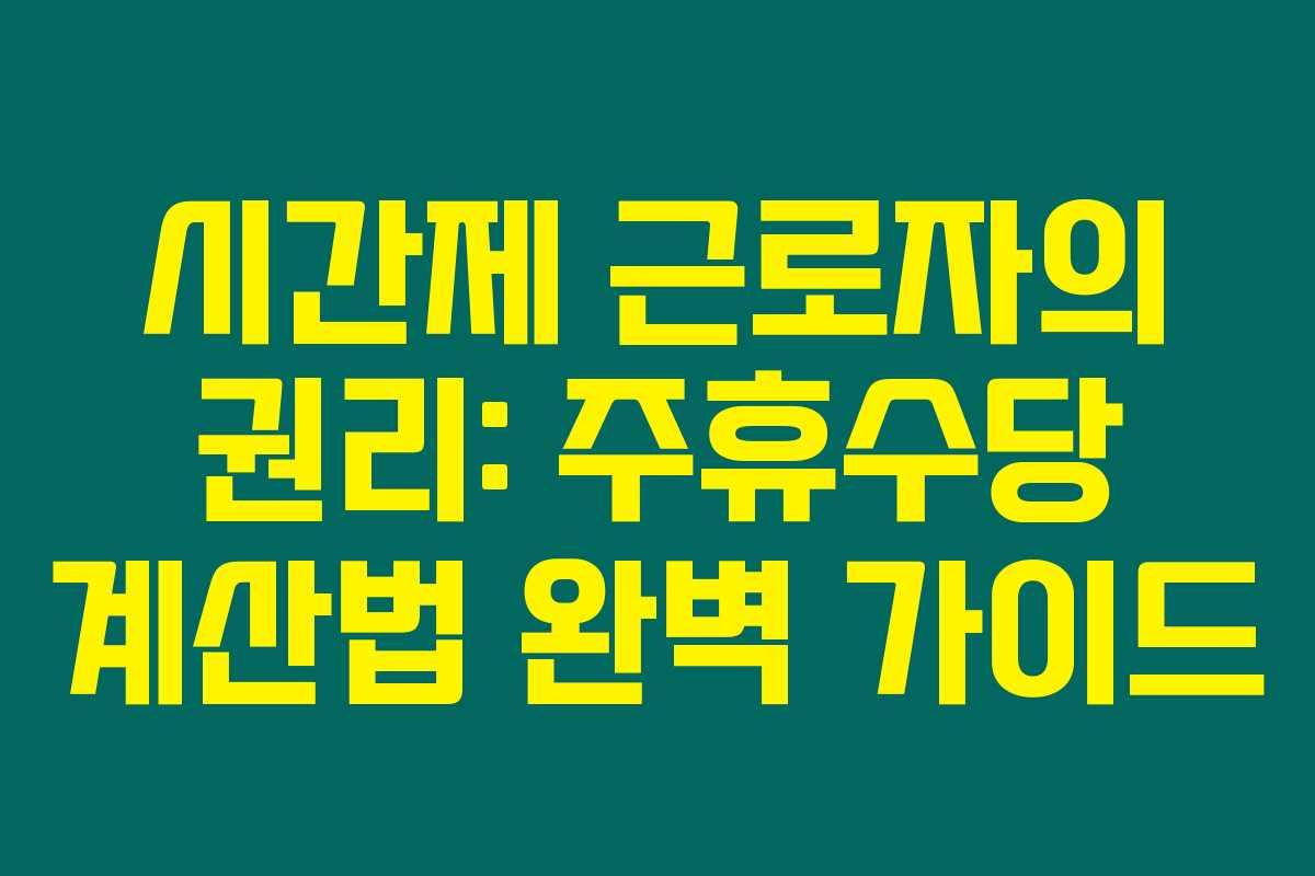 시간제 근로자는 그 권리를 보장받아야 하고, 주휴수당이 바로 그 중 하나로 고용주가 반드시 지급해야 하는 중요한 임금 항목입니다. 제가 직접 알아본 바로는, 많은 사람들이 주휴수당의 계산 방법을 오해하고 있기 때문에, 이를 명확히 이해하는 것이 꼭 필요하다고 생각해요. 아래를 읽어보시면 시간제 근로자의 주휴수당 계산법과 관련하여 필요한 정보를 알아보실 수 있습니다.