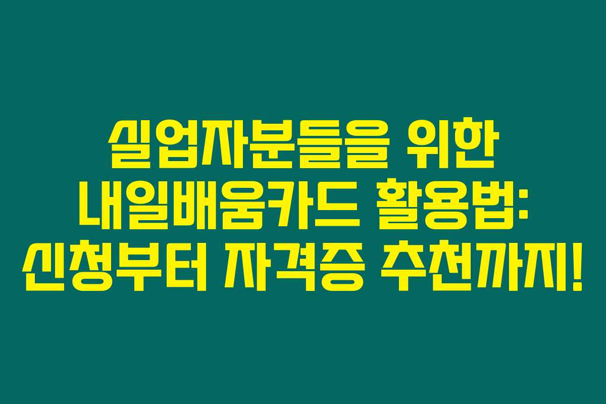 디스크립션: 제가 직접 체크해본 바로는 실업자인 경우, 내일배움카드를 통해 직업훈련 및 자격증 취득으로 재취업의 기회를 높일 수 있습니다. 이번 글에서는 내일배움카드의 신청 방법, 사용처, 추천 자격증 및 활용 팁을 자세히 안내해 드리겠습니다.