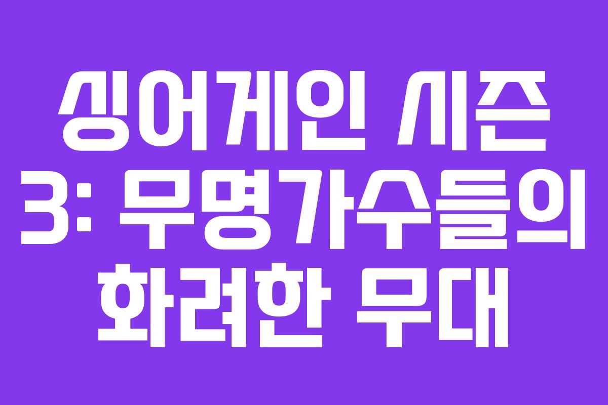 싱어게인 시즌 3는 많은 기대를 모으고 있으며, 앞으로의 무대들도 기대해봅니다.