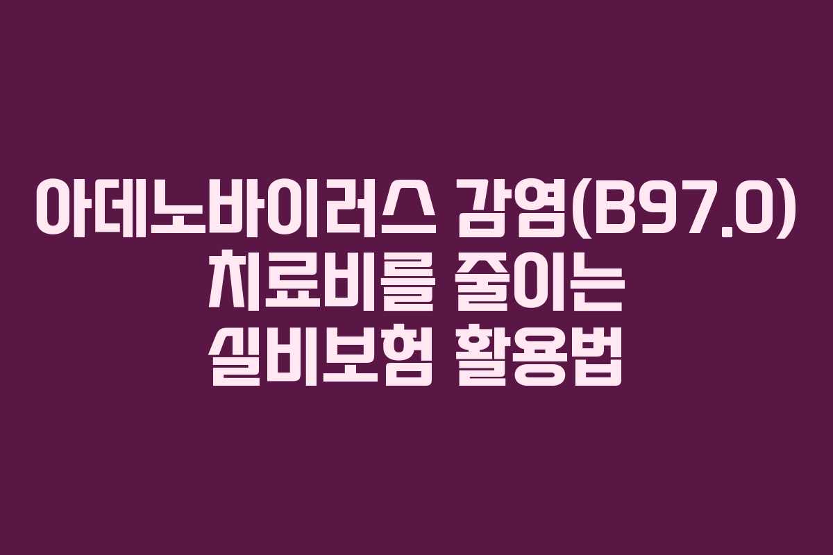 아데노바이러스 감염(B97.0) 치료비를 줄이는 실비보험 활용법