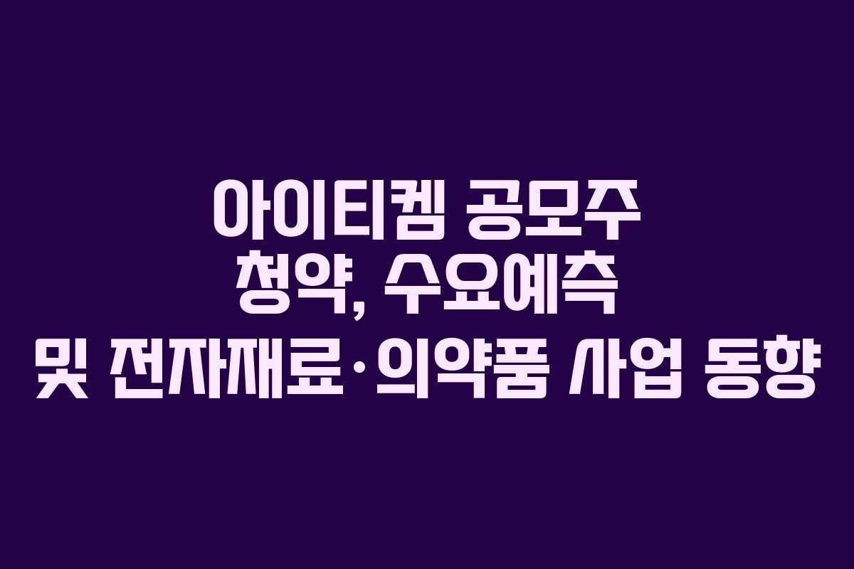 아래를 읽어보시면 아이티켐의 공모주 청약 핵심 일정과 수요예측의 의미, 상장 후 유통 물량이 주가에 미치는 영향과 사업 포지션을 한눈에 파악할 수 있습니다.
