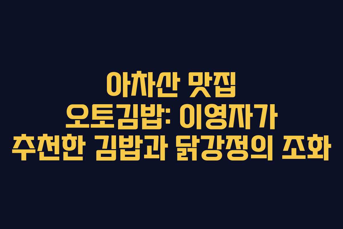 서울 아차산에 위치한 오토김밥은 이영자씨가 추천한 맛집으로, 뉴욕타임즈에도 소개된 바 있습니다. 이곳은 고추냉이김밥과 닭강정을 전문으로 하며, 등산 전 간단한 도시락을 찾는 이들에게 인기가 많습니다. 오토김밥은 아차산 1번 출구에서 280m 거리에 위치해 있으며, 주택가에 자리 잡고 있어 조용한 분위기 속에서 맛있는 음식을 즐길 수 있습니다.