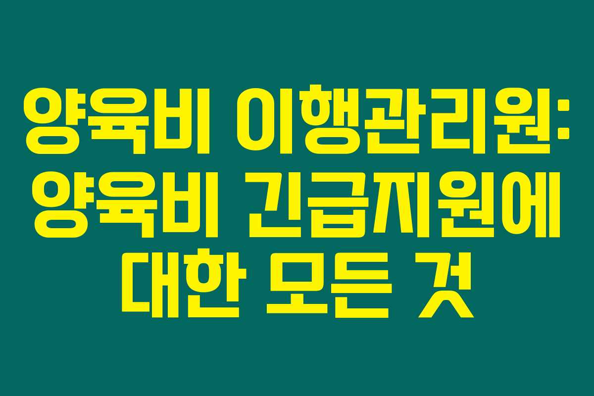 제가 직접 알아본 바로는, 양육비 이행관리원은 이혼 후 비양육 부모로부터 양육비를 받을 수 있도록 도와주는 중요한 기관입니다. 많은 부모님들이 양육비 수령에 어려움을 겪고 있으며, 이 때문에 자녀의 생계에 위협을 느끼는 경우도 많습니다. 이러한 문제를 해결하기 위해 필요한 정보와 절차를 아래에서 자세히 말씀드리겠습니다.