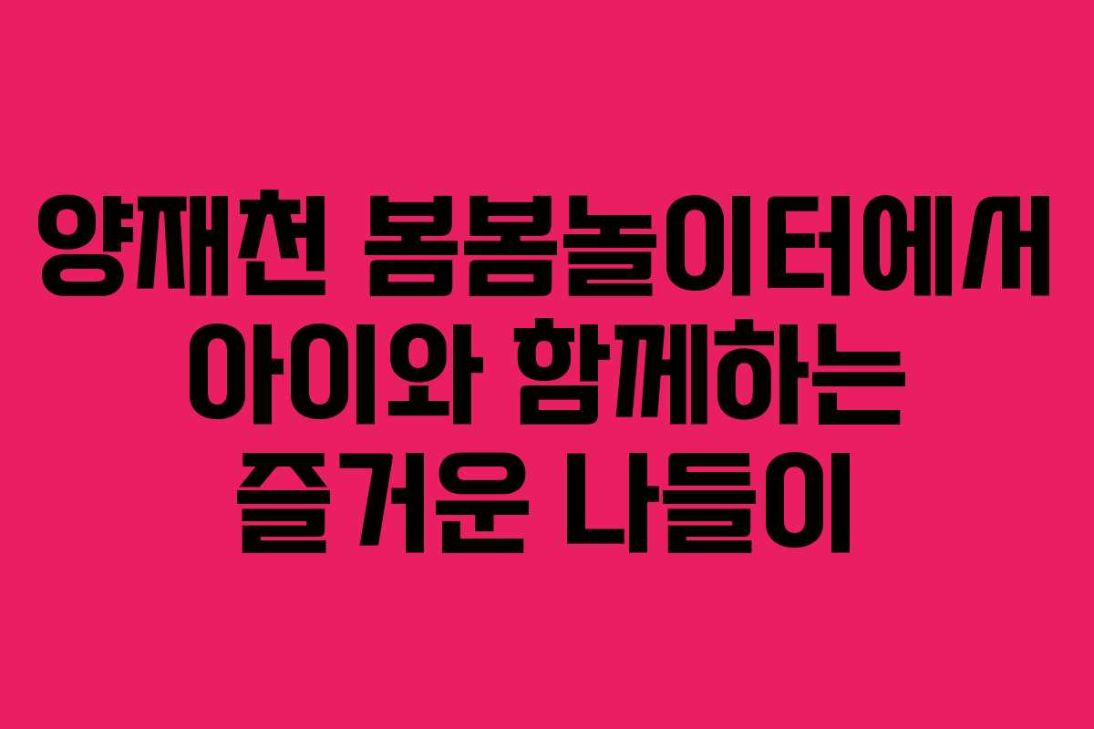 아이와 함께하는 가족 나들이는 언제나 특별한 경험입니다. 특히, 2026년 봄, 양재천의 봄봄놀이터는 아이들에게 행복한 시간을 제공하는 이상적인 장소입니다. 이곳에서는 다양한 놀이시설과 아름다운 자연 경관을 즐길 수 있어 가족 모두가 즐거운 시간을 보낼 수 있습니다.