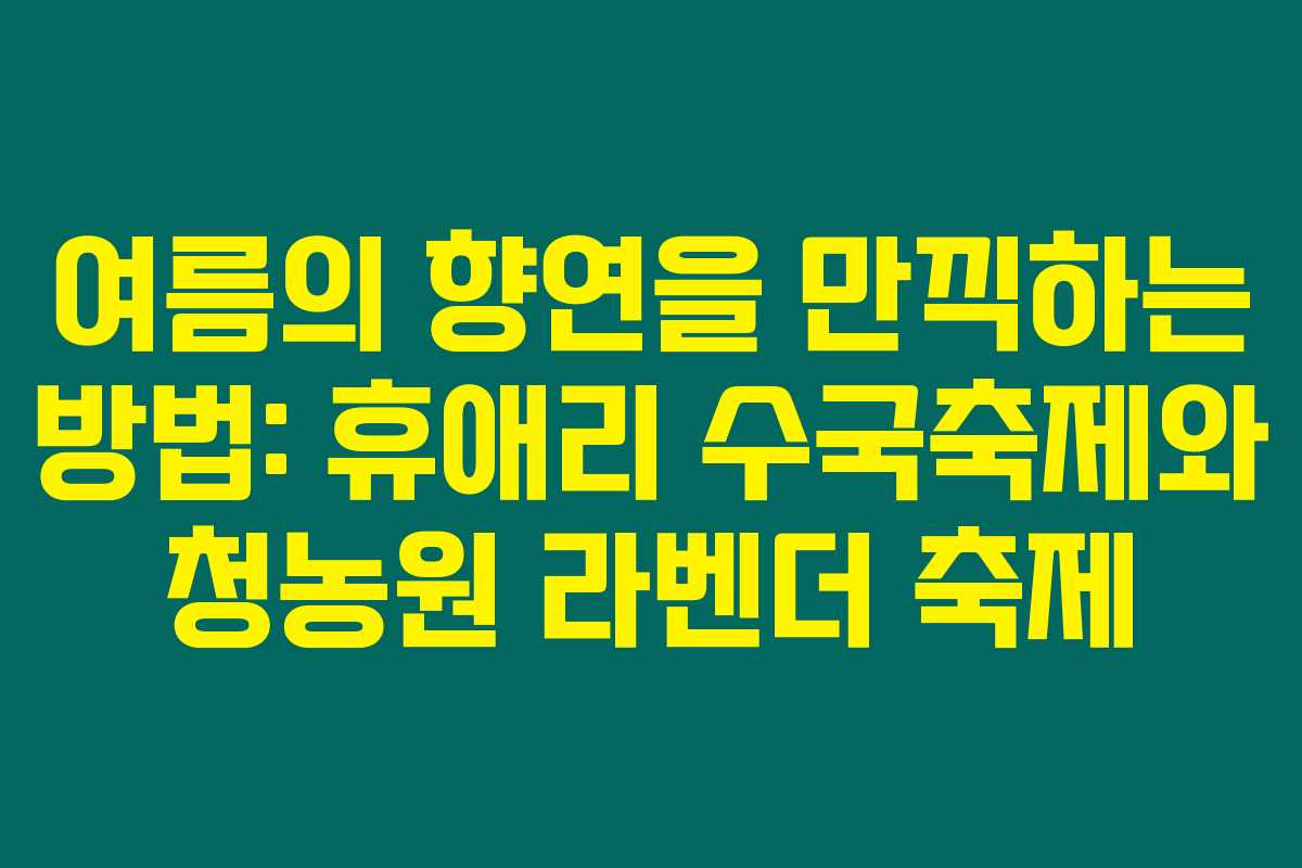 여름을 맞아 자연의 향연을 즐기고 싶다면 주목해야 할 두 가지 축제가 있습니다. 바로 제주도 휴애리 여름 수국축제와 전라북도 고창 청농원 라벤더 축제입니다. 여름을 대표하는 아름다운 수국과 향기로운 라벤더를 경험해보고 싶다면, 아래 정보를 꼭 확인해 보세요.