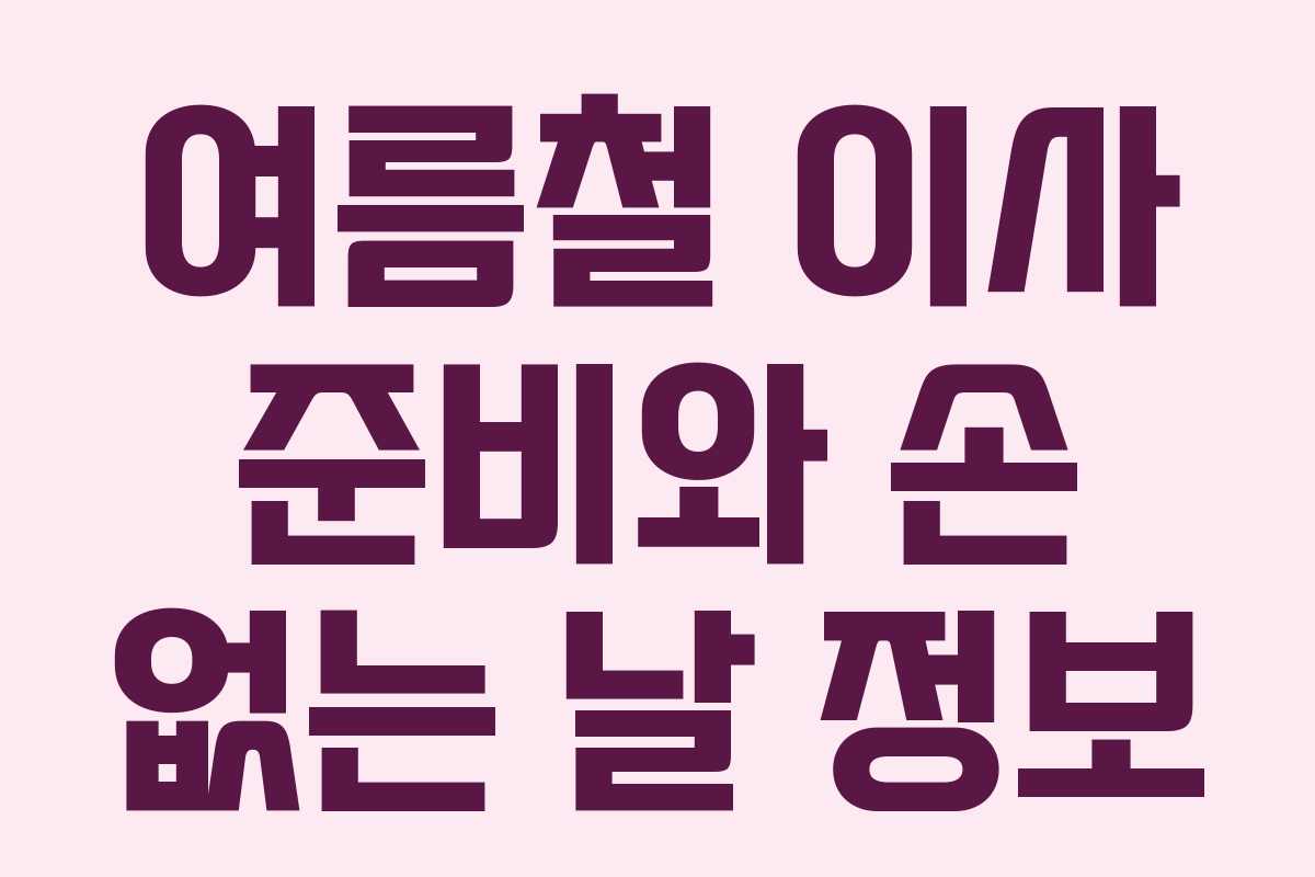 여름이 다가오면서 많은 사람들이 무더위 속에서도 이사나 리모델링을 계획하고 있습니다. 하지만 여름철의 높은 온도와 습도는 이사 과정에서 여러 가지 어려움을 초래할 수 있습니다. 오늘은 여름 이사를 더욱 원활하게 진행하기 위한 팁과 2025년 여름철 손 없는 날 정보를 소개합니다.