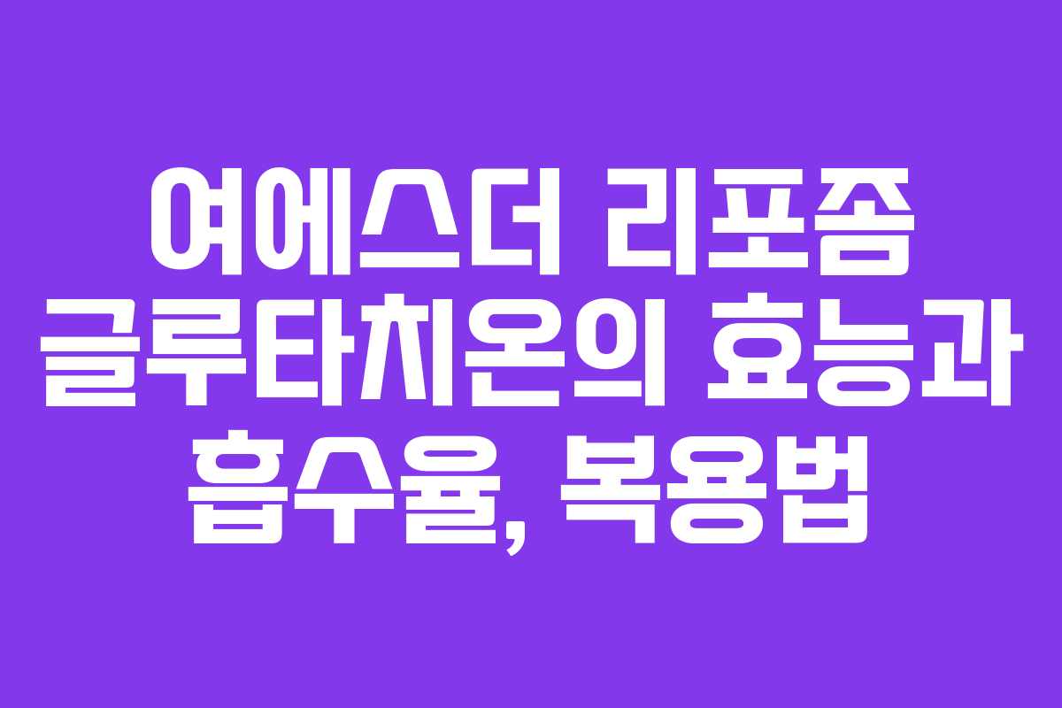 여에스더 리포좀 글루타치온은 건강과 피부 미용을 위해 많은 사람들이 찾는 보충제로, 특히 그 흡수율과 효과에서 차별성이 두드러집니다. 이 글에서는 여에스더 리포좀 글루타치온의 효능, 흡수율, 복용법 등을 자세히 살펴보겠습니다.