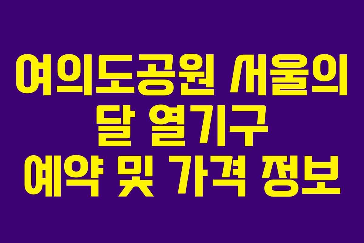 서울의 달 열기구는 2024년 8월 23일부터 여의도 한강공원에서 운영됩니다. 예매는 온라인 사전 예약을 통해 가능하며, 현장 구매는 당일 잔여 티켓이 있는 경우에 한해 가능합니다. 예약 경쟁이 치열할 것으로 예상되므로 최소 2주 전 예약을 권장합니다.