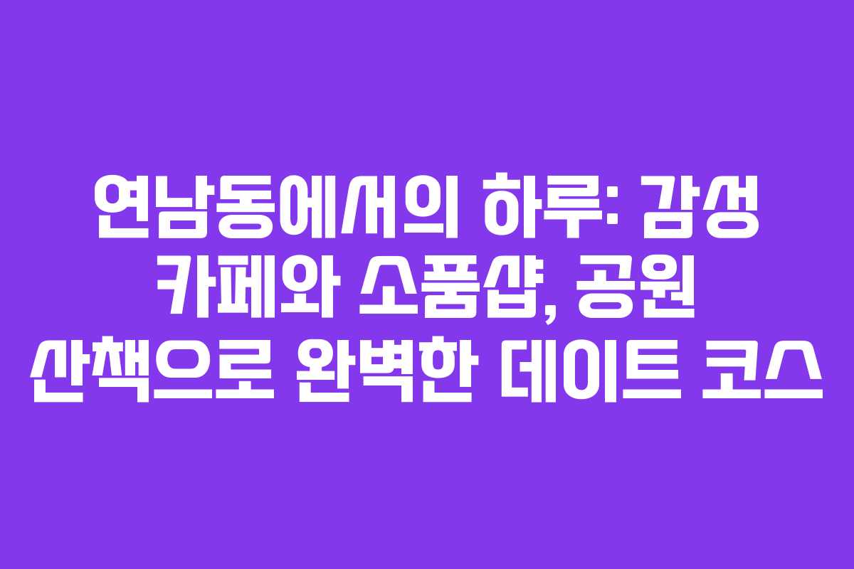 연남동은 골목마다 특색 있는 가게들이 가득해 걸음걸음이 설레는 데이트 코스입니다. 이곳에서 자연과 카페, 소품샵, 그리고 공원의 조화를 느끼며 하루를 풍성하게 보내고 싶은 분들께 강력히 추천하는 곳입니다. 연남동에서의 데이트는 특별한 추억으로 남을 것입니다.