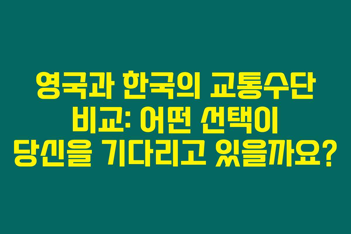 영국과 한국의 교통수단을 고민하고 있다면 반드시 읽어야 할 내용이에요. 각각의 나라가 제공하는 교통 시스템을 비교하면서 어떤 점이 나에게 더 유리한지 함께 알아보아요. 특히 버스와 지하철을 어떻게 이용할지 고민하고 있다면, 이 글에서 그 해답을 찾아보시면 좋겠어요.