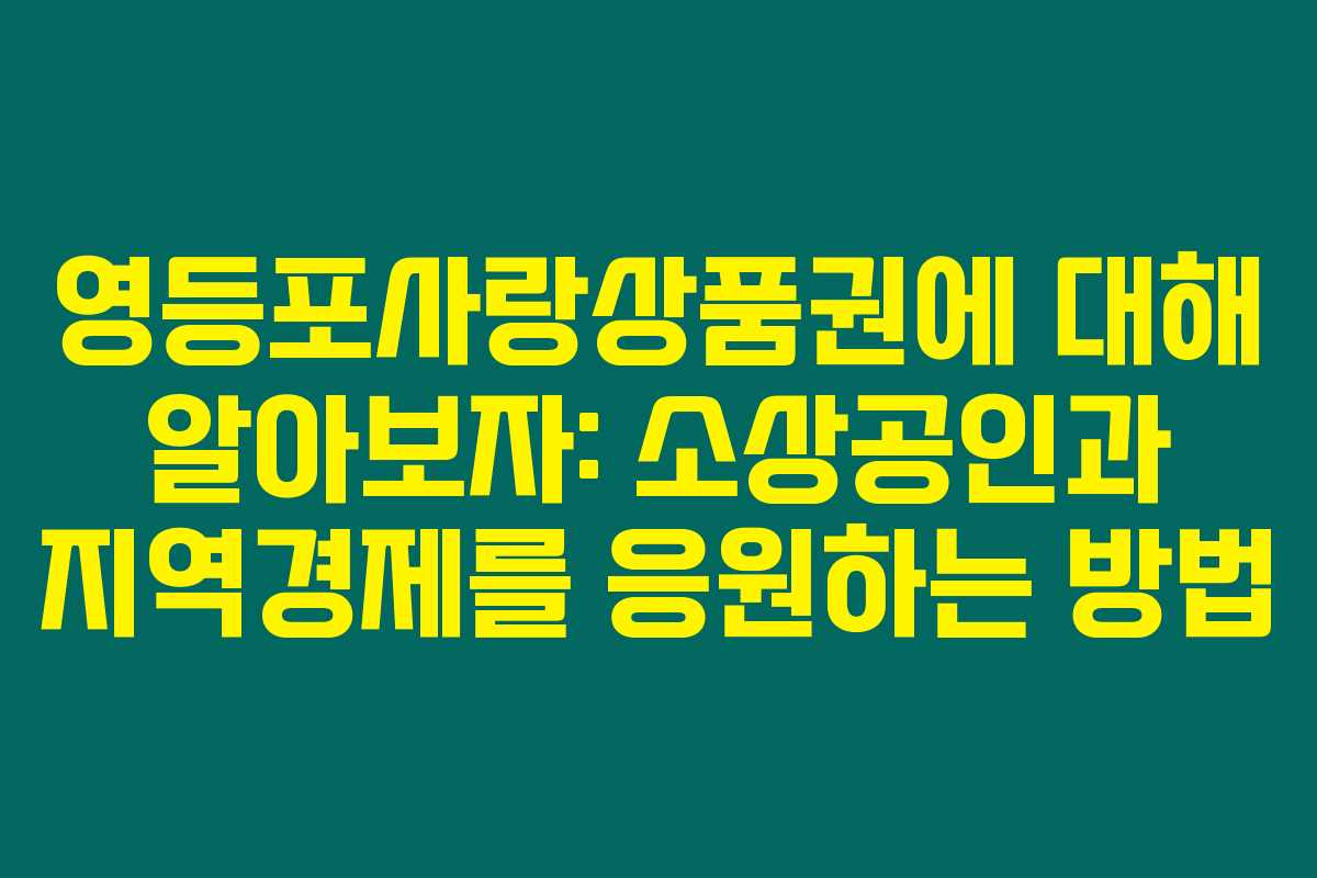 영등포사랑상품권은 단순한 소비를 넘어서 지역 경제와 소상공인을 지원하는 중요한 역할을 하고 있습니다. 제가 직접 리서치한 결과, 경제 회복의 일환으로 많은 지역에서 지역 상품권을 도입하고 적용하고 있습니다.