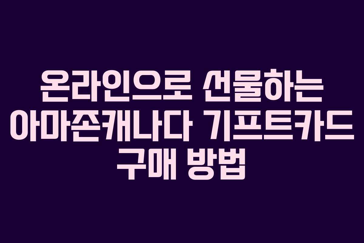 온라인으로 선물하는 방법 중 하나인 아마존캐나다 기프트카드를 구매하는 과정에 대해 알아보겠습니다. 최근에는 직접 선물을 전달하기 어려운 상황이 많아졌기 때문에, 기프트카드는 매우 유용한 대안이 되고 있습니다.