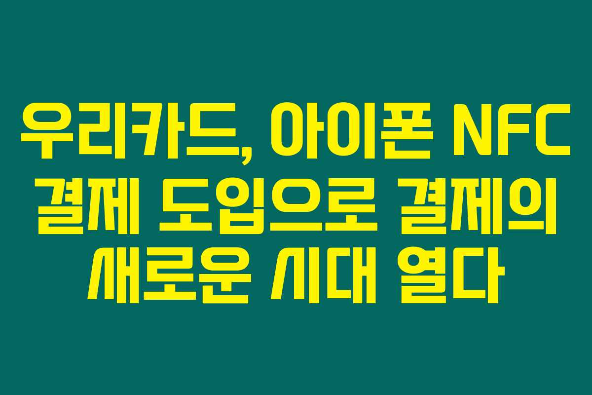 우리카드가 자사의 결제 시스템인 우리WON페이를 업그레이드하여 아이폰 사용자들을 위한 NFC 결제 기능을 도입했어요. 이전에는 QR코드를 통해서만 결제가 가능했지만 이제는 NFC 기능을 통해 더욱 빠르고 쉽게 결제할 수 있게 되었답니다. 이는 특히나 바쁜 일상 속에서 아주 큰 장점으로 작용할 거예요!