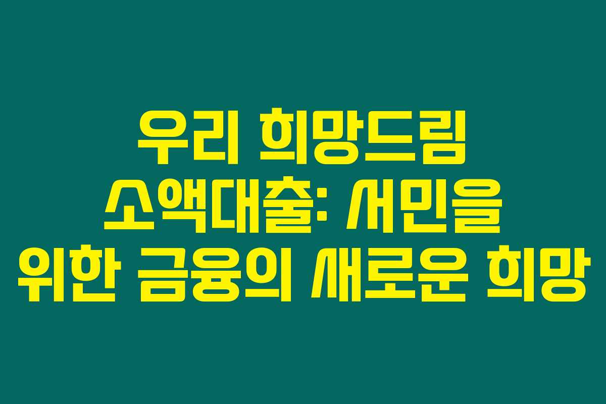 제가 직접 리서치한 바로는 우리 희망드림 소액대출은 고금리 대출에 시달리는 저소득, 저신용층에게 큰 도움이 되는 제품이에요. 저신용자나 다중채무자들도 신청할 수 있어 금융 취약계층의 숨통을 트여주고 있습니다. 아래를 읽어보시면 이 대출의 자세한 조건과 한도를 확인할 수 있을 거예요.
