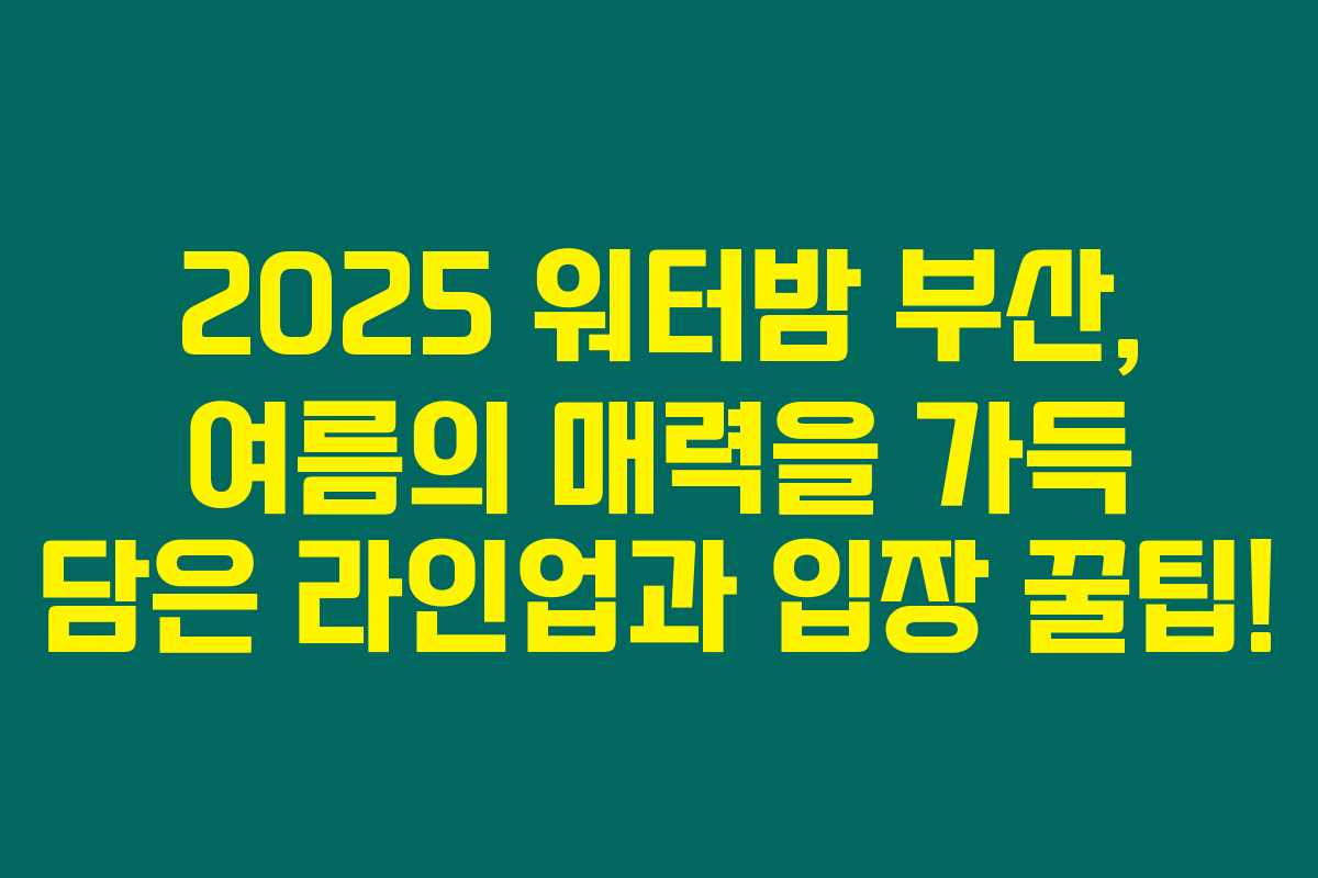 2025 워터밤 부산은 여름의 정수를 느끼고 싶다면 놓칠 수 없는 완벽한 장소에요. 아티스트 라인업과 입장 꿀팁을 잘 기억하시고, 멋진 여름의 추억을 쌓으세요!