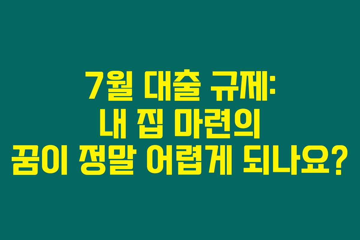 제가 알아본 바로는, 오는 7월부터 시행되는 대출 규제로 인해 많은 분들이 내 집 마련의 꿈을 접어야 하는 게 아닌가 하는 우려를 하고 있는 것 같아요. 특히 스트레스 DSR(총부채원리금상환비율)에 대한 전면 적용, 주택담보대출 한도 제한, 실거주 의무 강화 등은 주택 구매에 직접적인 영향을 미칠 수 있습니다. 아래를 읽어보시면 대출 규제가 정말로 어떤 변화들을 가져오는지, 그리고 우리가 어떻게 대비해야 할지 함께 알아보도록 할게요.