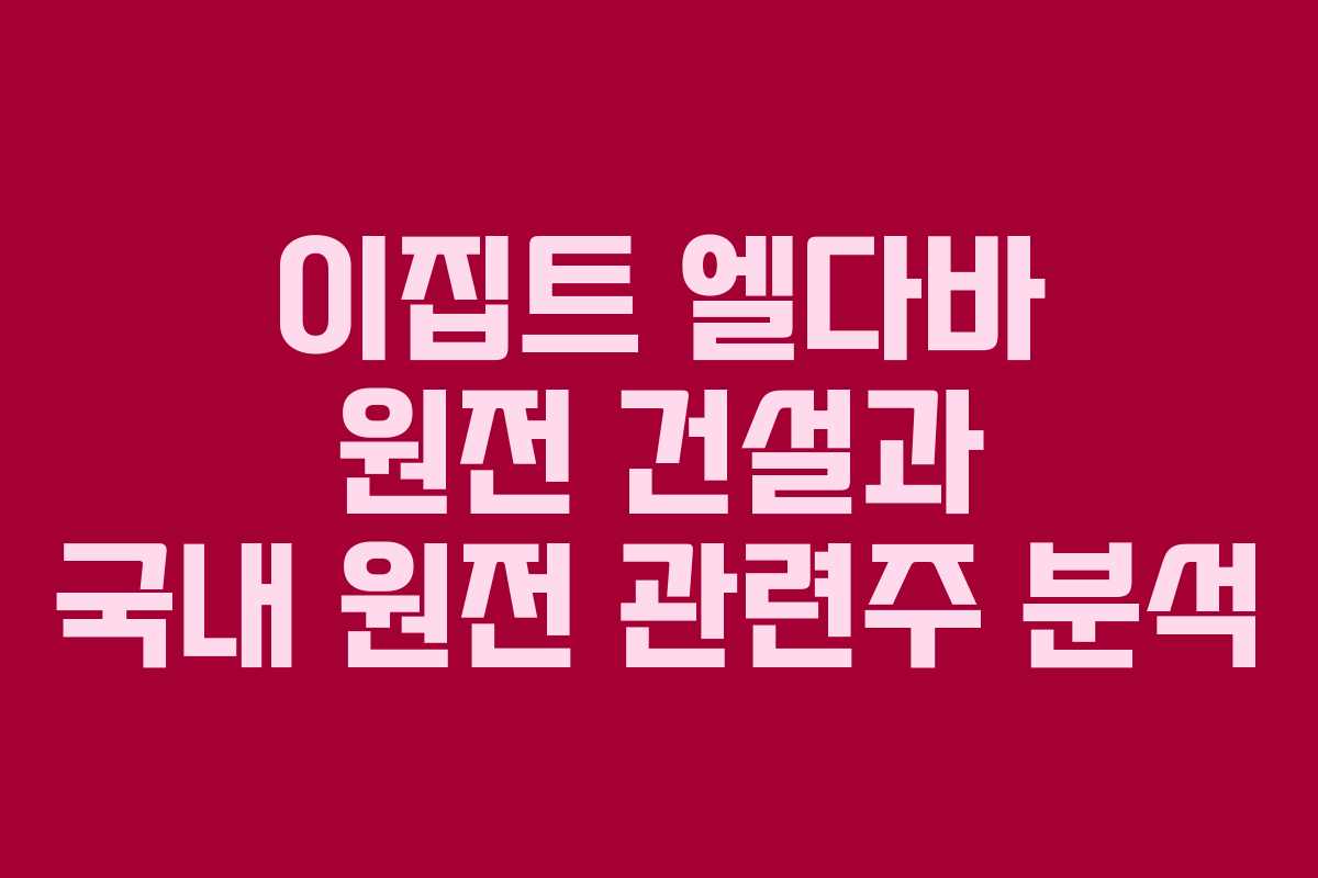 최근 이집트 엘다바 원전 건설 프로젝트에 대한 소식이 전해지면서, 국내 원전 관련주에 대한 관심이 높아지고 있습니다. 이 프로젝트는 한국수력원자력이 2차측 건설사업을 수주하면서 시작되었으며, 여러 국내 기업들이 참여할 예정입니다. 이번 포스팅에서는 이와 관련된 주요 기업들을 정리해 보겠습니다.