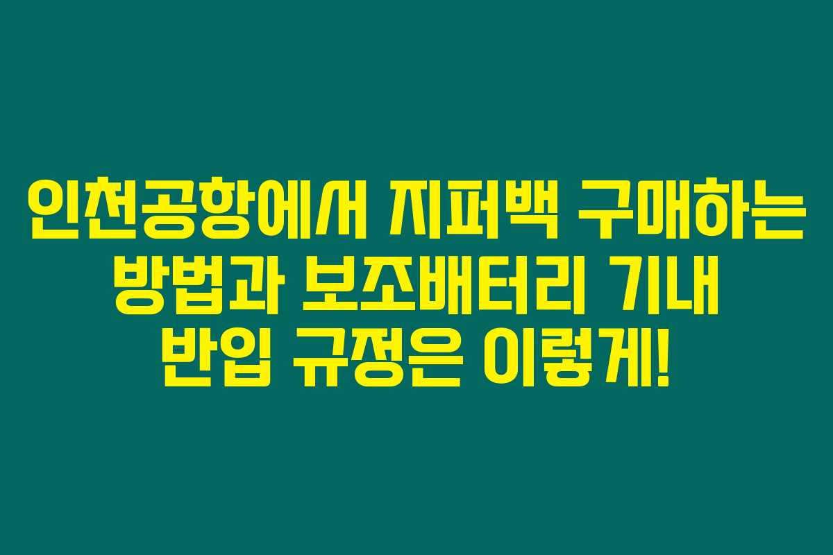 제가 직접 경험해본 결과로는, 인천공항에서 여행을 준비할 때 지퍼백과 보조배터리의 규정을 이해하는 것이 매우 중요하답니다. 그만큼 많은 여행객들이 이 두 가지 사항을 놓쳐서 불필요한 불편을 겪는 경우가 많기 때문이에요. 아래를 읽어보시면, 인천공항의 지퍼백 위치와 보조배터리의 기내 반입 규정을 완벽하게 이해하실 수 있을 거에요.