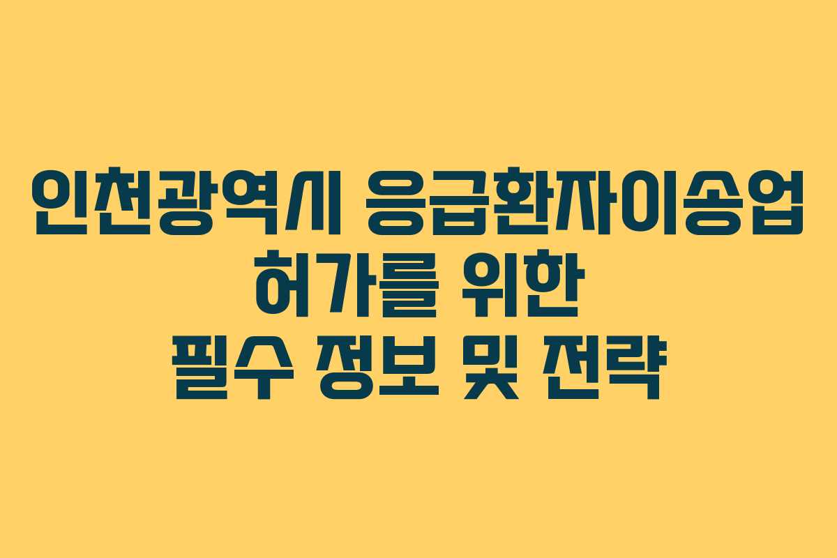 인천광역시에서 응급환자이송업을 시작하고자 할 때, 준비할 사항이 많다는 점을 실감하게 됩니다. 단순히 구급차를 구매하는 것으로는 사업을 시작할 수 없으며, 인천광역시로부터의 허가가 필수입니다. 이 과정은 사람의 생명과 밀접한 연관이 있기 때문에 특히 까다로운 심사가 요구됩니다. 인천시장은 이러한 사업에 대해 엄격한 기준을 적용하므로, 제대로 된 정보와 전략이 필요합니다.