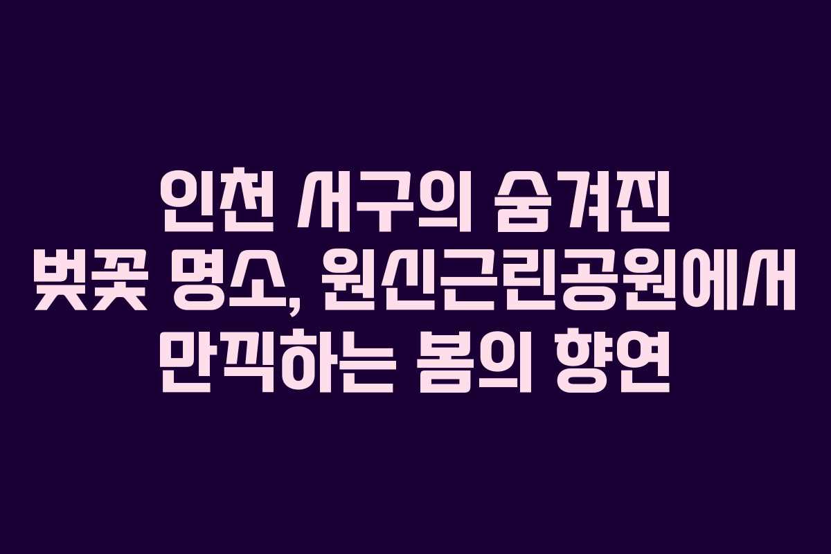 원신근린공원은 인천 서구에서 조용히 벚꽃을 즐길 수 있는 최적의 장소로, 많은 이들에게 사랑받는 명소로 자리매김하고 있다. 이곳에서 벚꽃을 감상하며 소중한 시간을 보내는 것은 일상에서 벗어나 여유를 찾는 좋은 기회가 될 것이다. 2026년 벚꽃 시즌에 이곳을 방문하여 특별한 순간을 만끽해보기를 권장한다.