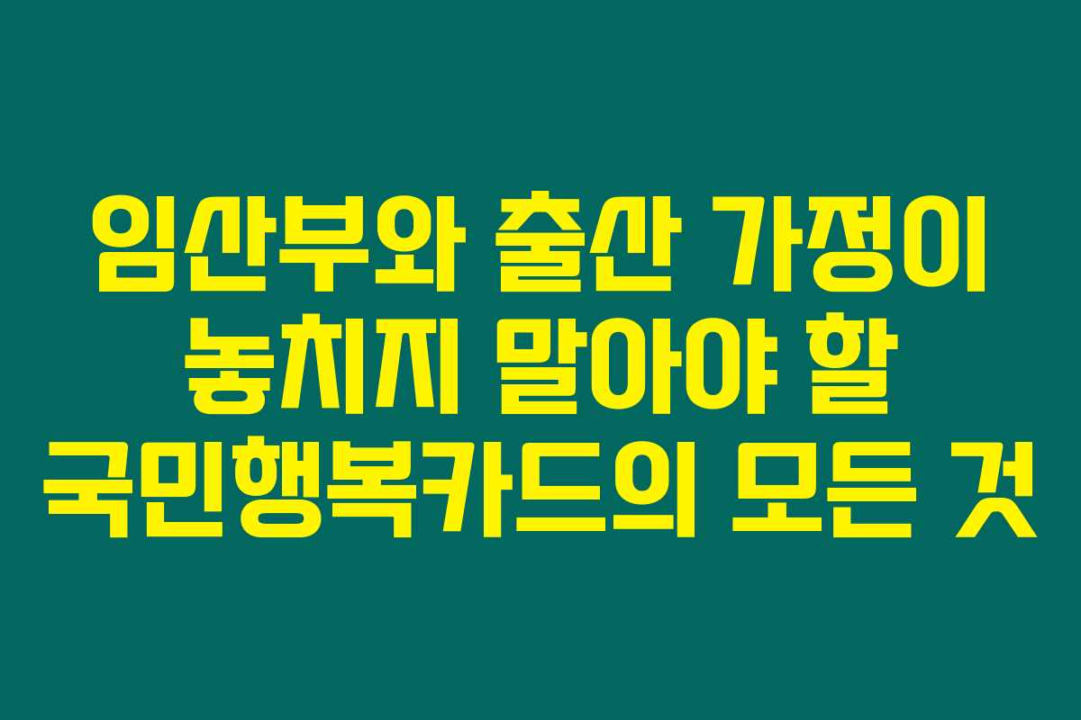 2. 국민행복카드는 정부가 마련한 국가 바우처 카드로, 임산부 및 출산 가정이 이용할 수 있는 자원들을 통합하여 제공합니다.