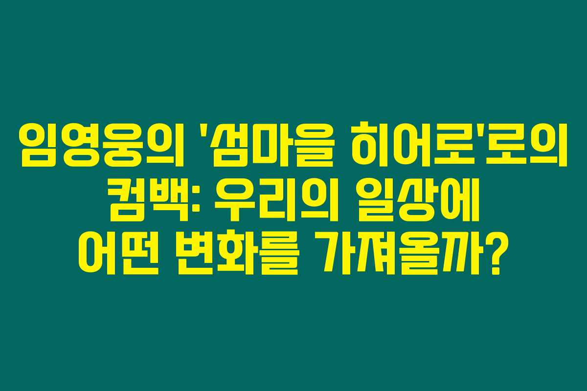 ‘섬마을 히어로’는 고립의 섬에서 삶의 본질을 재조명하는 예능으로, 임영웅이 대중과 감정을 나누는 새로운 방식입니다.