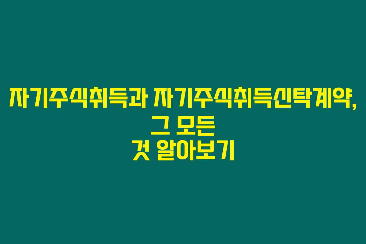 제가 직접 리서치한 바로는 자기주식취득과 자기주식취득신탁계약은 기업의 경영 전략에서 중요한 요소로 자리잡고 있답니다. 이 두 가지 각각의 개념은 기업의 자사주 매입에 관한 절차와 규정을 담고 있으며, 회사의 주가 안정과 주주 가치를 제고하는 데 도움을 줄 수 있어요. 아래를 읽어보시면 이 두 개념의 특성과 운영 방식에 대해 더 깊이 이해하실 수 있을 것 같아요.