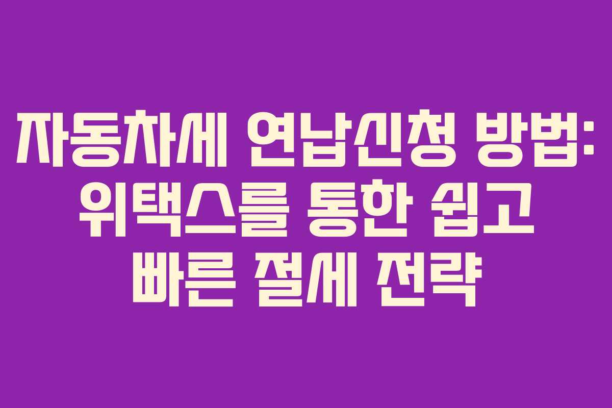 자동차세 연납신청 방법: 위택스를 통한 쉽고 빠른 절세 전략