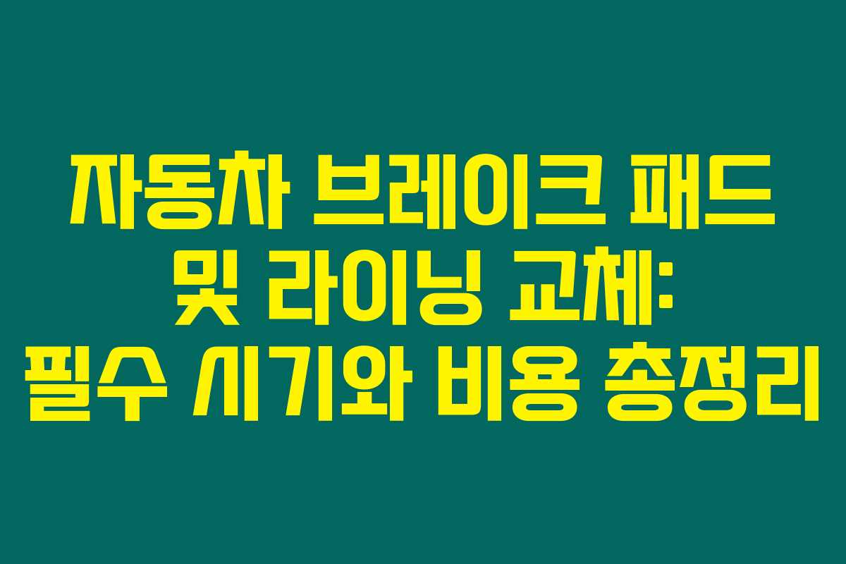 자동차 브레이크 패드 및 라이닝 교체: 필수 시기와 비용 총정리