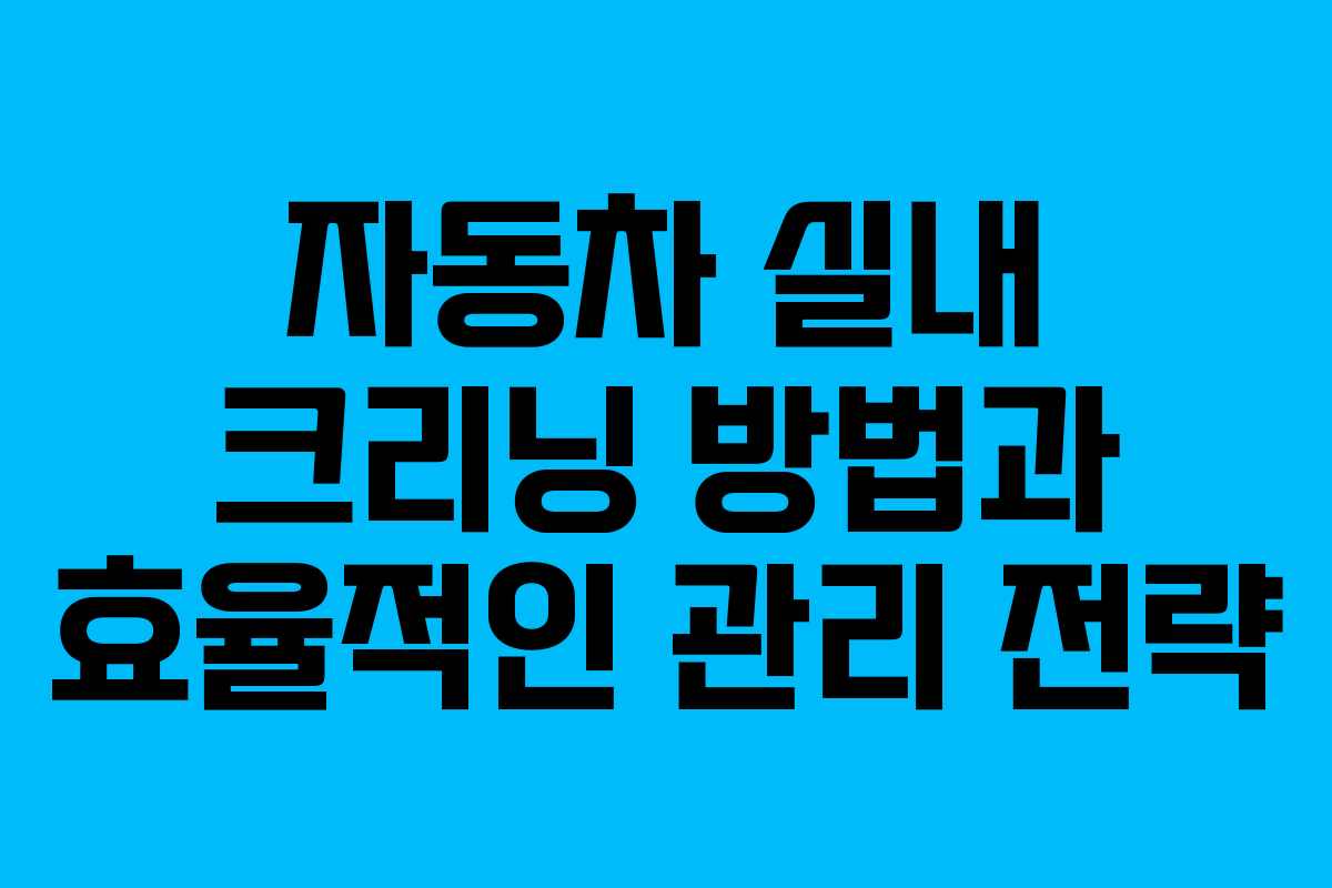 자동차 실내 크리닝은 정기적인 관리와 올바른 방법을 통해 효율적으로 수행할 수 있습니다. 실내 환경을 쾌적하게 유지하기 위해서는 위에서 언급한 방법들을 참고하여 실천하는 것이 좋습니다.