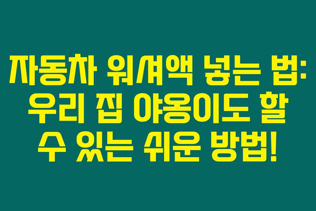 제가 알아본 바로는, 자동차 워셔액을 넣는 법은 누구에게나 쉽고 간단한 작업이랍니다. 이번 글에서는 간단한 셀프 정비로 우리 집 야옹이도 할 수 있을 만큼 쉽게 알아볼 수 있는 방법을 소개할게요. 아래를 읽어보시면 자동차 워셔액을 직접 보충하는 방법을 쉽게 익히실 수 있을 거예요.