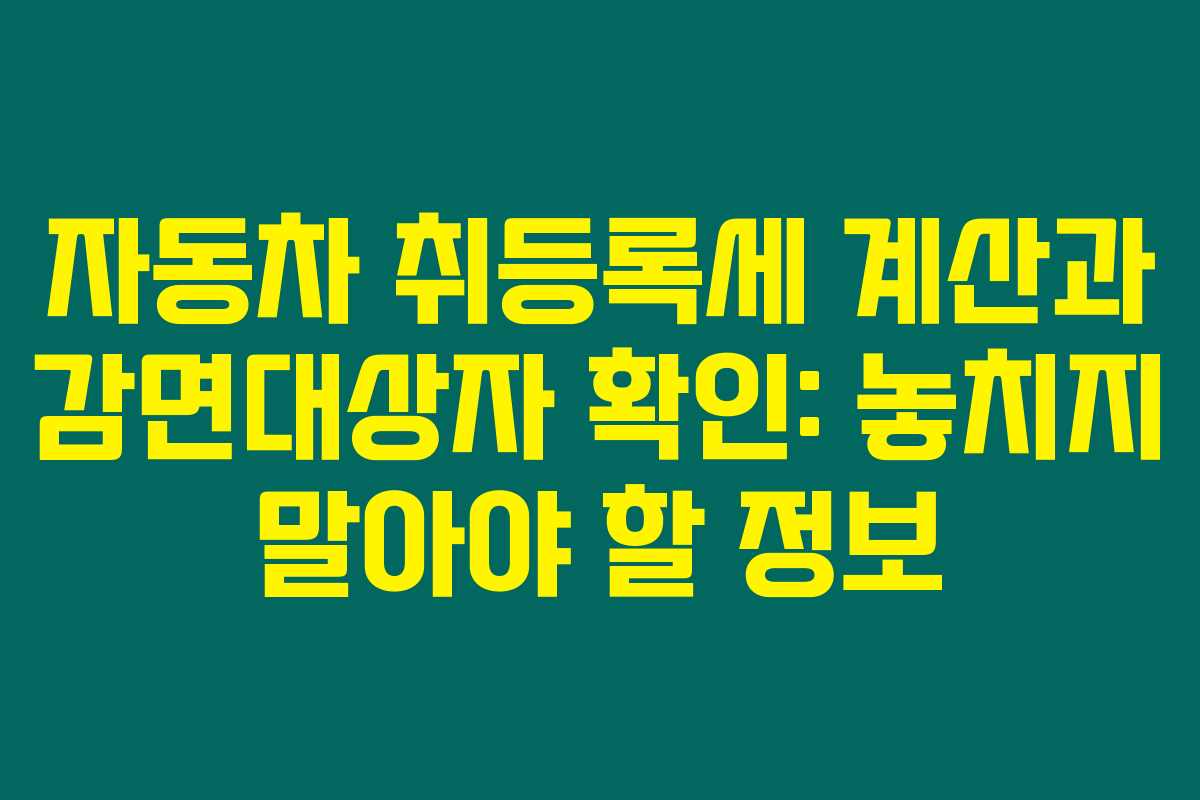 제가 직접 알아본 바로는, 자동차를 구매할 때 취등록세는 정말 큰 금액이 될 수 있어요. 처음에는 차량 가격만 생각하지만, 실제로는 추가로 내야 할 비용인 취등록세가 존재하죠. 이런 세금에 대한 정보를 미리 알고 준비하면 훨씬 더 수월하게 자동차 구매를 할 수 있습니다. 아래를 읽어보시면 자동차 취등록세 계산 방법과 감면 혜택에 대해 자세히 알아보실 수 있어요.
