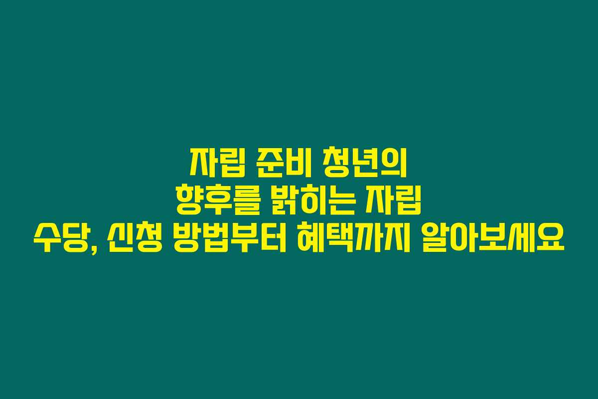 제가 경험해본 결과로는, 자립 준비 청년 수당은 정부에서 제공하는 매우 중요한 지원제도입니다. 이 수당은 보호 종료 아동들에게 경제적 도움을 주어 안정적인 사회 정착을 돕기 위한 것입니다. 특히, 최근에는 자립 수당의 혜택이 인상되고 온라인 신청이 가능해져 많은 분들이 더욱 유용하게 이를 활용하고 있습니다. 아래를 읽어보시면 자립 수당에 대한 알찬 정보를 얻을 수 있을 거예요!