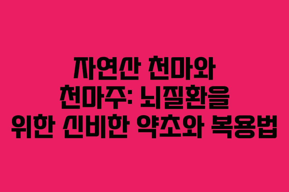 - 천마의 올바른 활용법: 효과적인 치료를 위한 가이드
