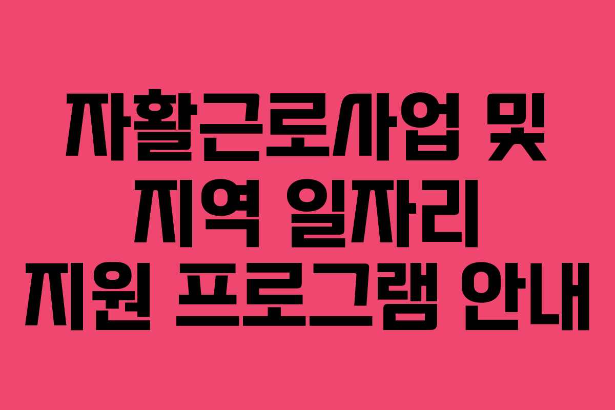 자활근로사업과 다양한 지역 일자리 지원 프로그램은 경제적 어려움을 겪는 분들에게 중요한 도움을 주고 있습니다. 이 글에서는 각 사업의 특징과 신청 방법, 지원 내용을 상세히 안내합니다.