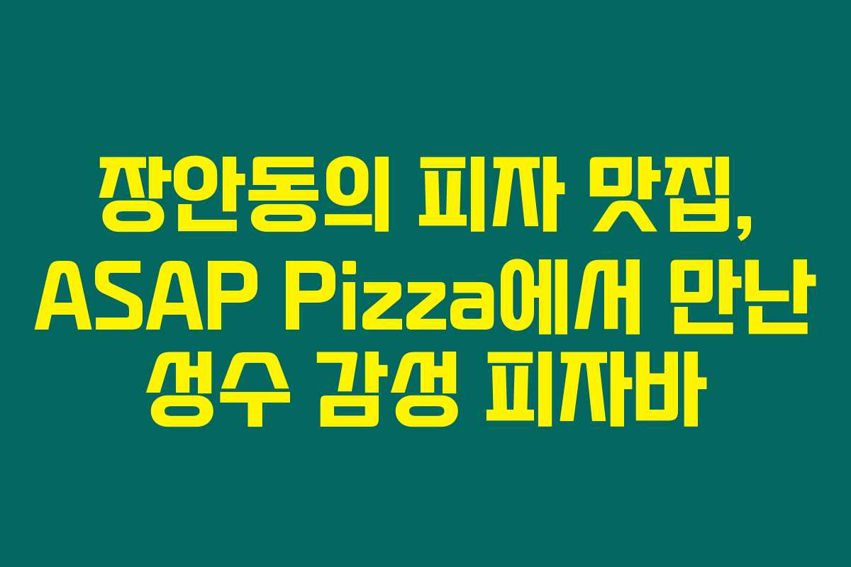 제가 직접 경험해본 바로는, 서울 동대문구 장안동에 있는 ASAP Pizza는 정말 독특한 매력을 지닌 피자집이에요. 이곳은 흔히 현지 음식 위주로 알려진 장안동에서, 마치 성수동의 분위기를 물씬 느낄 수 있는 감성 피자바로, 최근 손님들의 발길을 사로잡고 있답니다. 아래를 읽어보시면 ASAP Pizza가 어떤 매력을 가지고 있는지, 제가 직접 알아본 리뷰가 도움이 될 거예요!