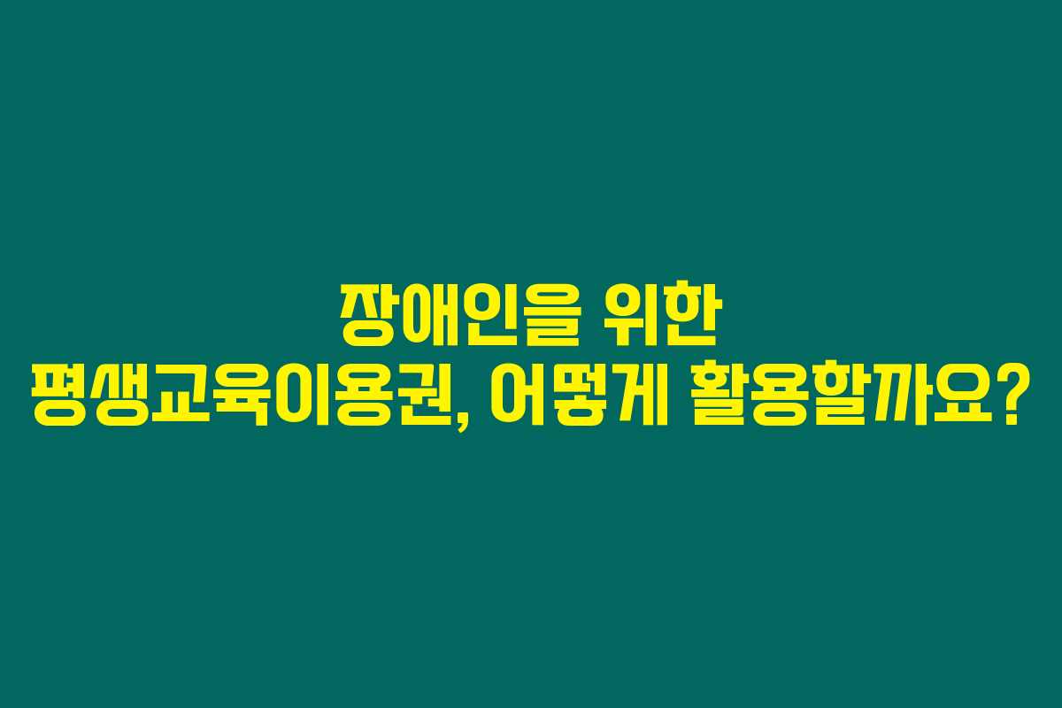 장애인 평생교육이용권을 통해 새로운 기회를 찾아보세요. 더 많은 궁금증이나 도움이 필요하다면 언제든지 문의해 주시기 바랍니다!