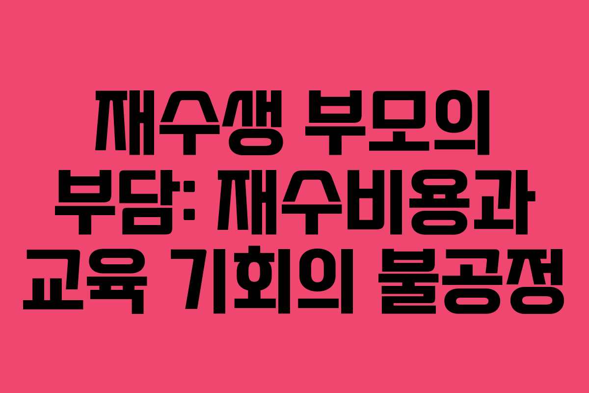 재수생 부모들은 자녀의 재수를 위해 4,000만원 이상의 비용을 감당해야 하는 경우가 많아 경제적 부담이 큽니다.