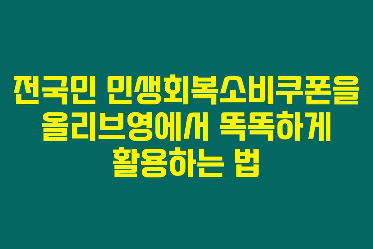 전국민 민생회복소비쿠폰을 받았거나 사용할 계획이라면, 올리브영에서 이 쿠폰을 어떻게 유용하게 활용할 수 있는지 궁금하시죠? 경제적인 부담을 덜기 위해 이 기회를 놓치지 마세요. 올리브영에서 제공하는 다양한 제품을 할인받아 구매하는 팁과 사용법을 아래를 읽어보시면 쉽게 아실 수 있습니다.