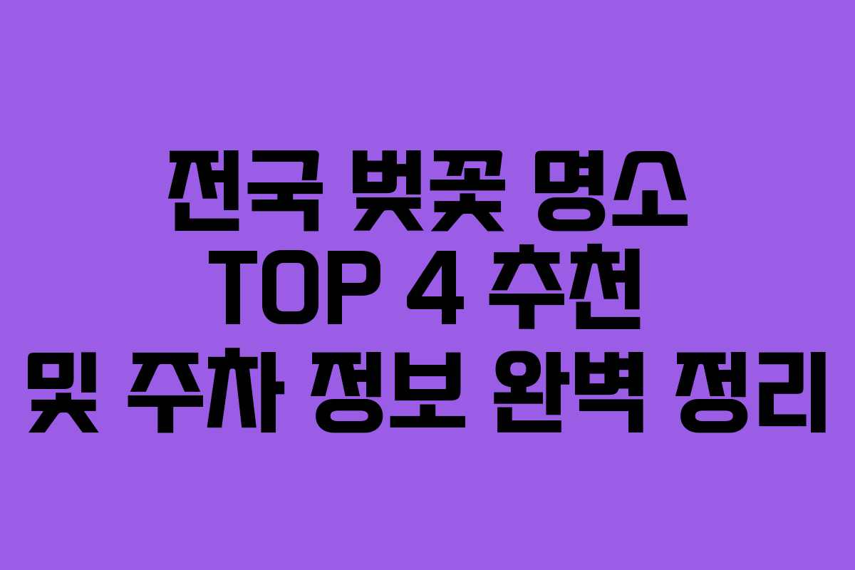 봄이 다가오면서 벚꽃이 만개하는 시기가 코앞에 왔습니다. 수도권뿐만 아니라 지방에도 아름다운 벚꽃 명소가 많이 있습니다. 이번에는 비교적 덜 붐비는, 그러나 그 아름다움은 뛰어난 네 곳의 벚꽃 명소를 소개하겠습니다. 각각의 위치, 주차 정보, 관람 팁까지 상세히 안내드릴 테니 봄 나들이 계획에 도움이 되기를 바랍니다.