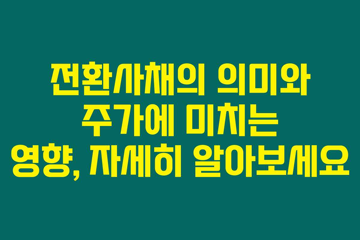 주식 투자에 있어 다양한 용어를 접하게 되는데, 특히 전환사채라는 용어는 처음 듣는 분들에겐 약간 생소하게 느껴질 수 있습니다. 이 글에서는 전환사채의 뜻과 함께, 그것이 주가에 어떤 영향을 미치는지를 심층적으로 다루어보겠습니다. 아래를 읽어보시면 전환사채에 대해 보다 명확히 이해할 수 있을 거예요.