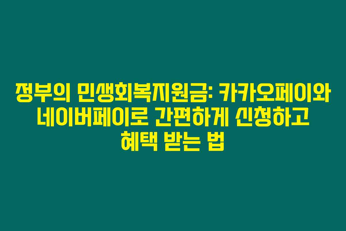 정부의 민생회복지원금이 제공하는 기회를 통해 우리가 생활비 부담을 덜고 경제적 안정을 누릴 수 있도록 돕는 방법을 알아보았습니다. 카카오페이와 네이버페이를 통해 간편하게 신청하고 사용해보세요. 경제적 여유와 함께 많은 혜택을 누리는 기회를 놓치지 마세요!