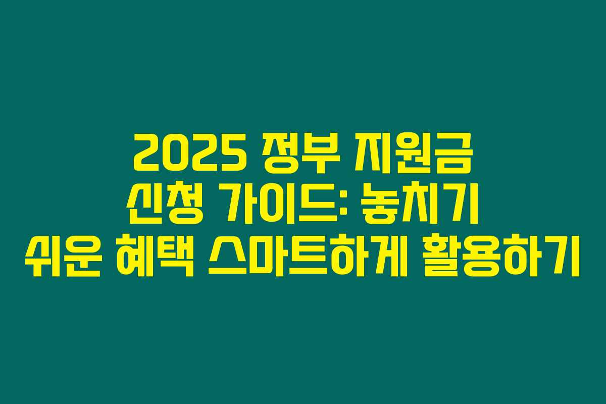 2025년 정부 지원금은 여러분의 삶에 큰 도움이 될 수 있습니다. 놓치지 말고 꼭 신청해보세요!